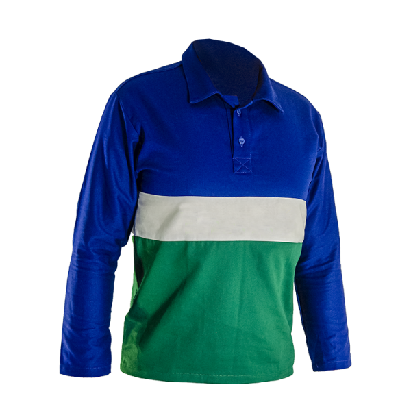 Camisa gola esporte com petilho com fechamento por velcro/botão, manga longa sem punho.